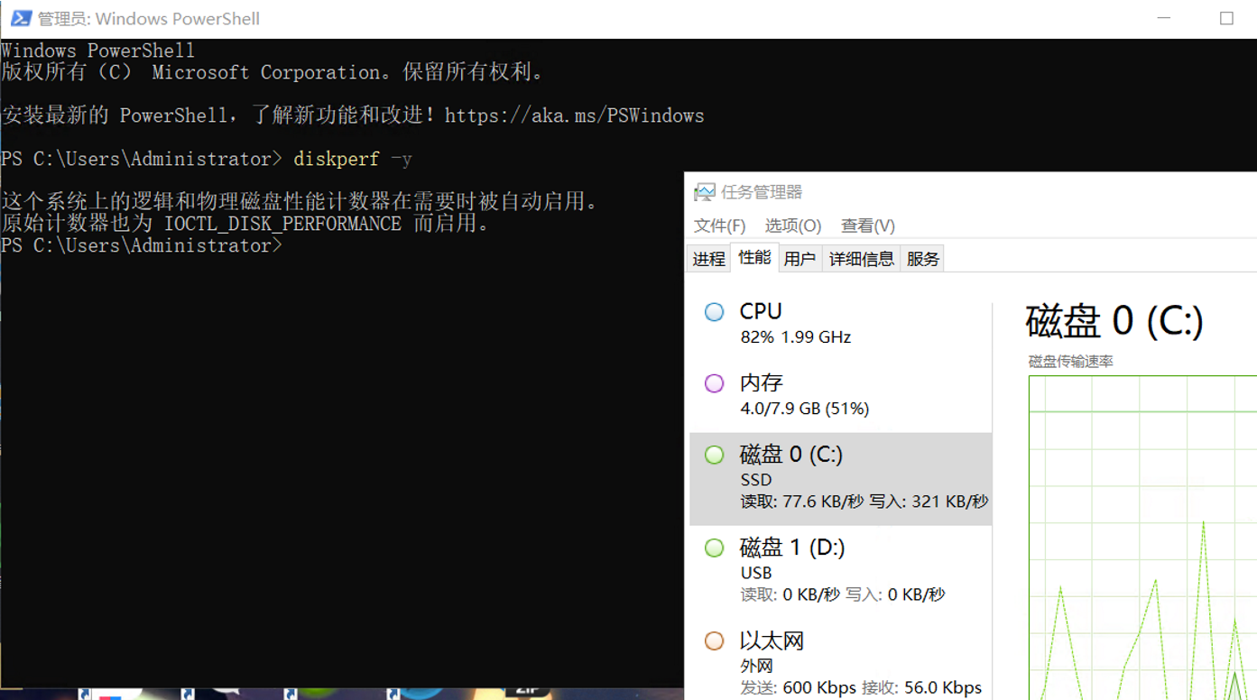 WinServer开启任务管理器磁盘状态选项