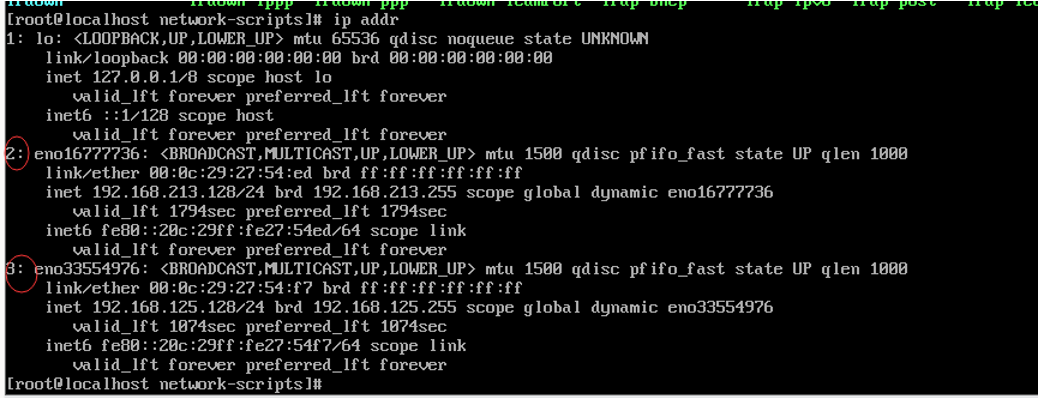 关于双网卡情况,在IP addr命令里有显示两张网卡